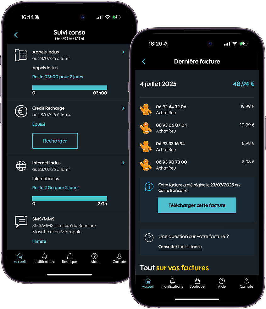 Consultez votre hors forfait, consommation internet, appels, sms/mms et options en un seul coup d’oeil !